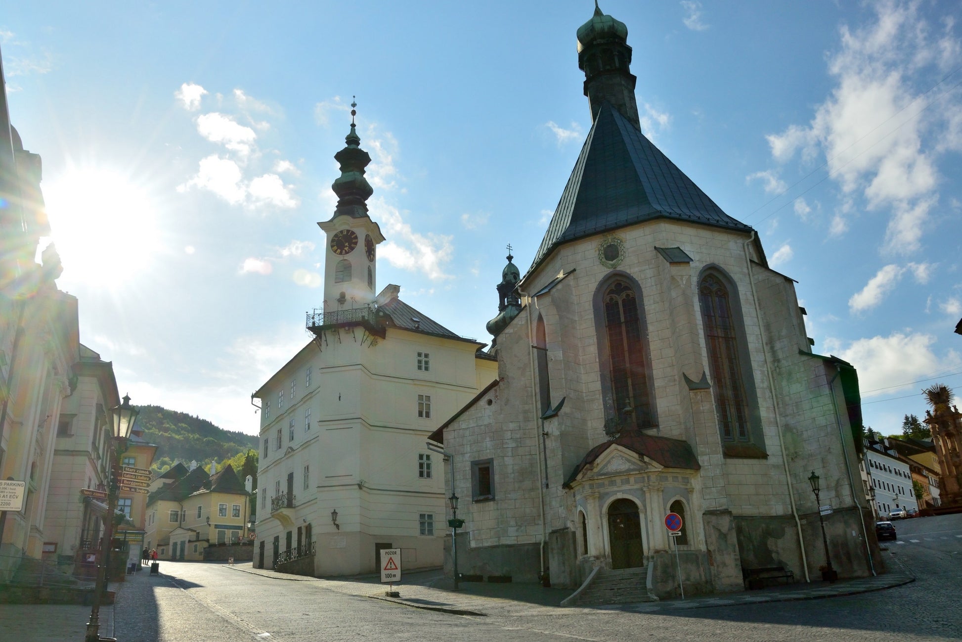 A város központjának fő nevezetessége az Óvár, mely napjainkban múzeumként működik, és többek között nagyon érdekes pipagyűjteménnyel is rendelkezik. A bányászati Múzeum látogatói földalatti bányába is bejuthatnak. Szembeötlő látványosság a 23 részes barokk Kálvária, melynek részei a Selmeci-hegység gyönyörű lankáin találhatóak meg. Az Óvárral szembenálló dombon áll az Újvár vagy másik nevén Leányvár, amely szintén múzeumként működik. Ez a múzeum a törökellenes harcokhoz kapcsolódó gyűjteményt tartalmaz. A város műemlékeinek többsége a Szentháromság tér és a Városháza tér körül található.