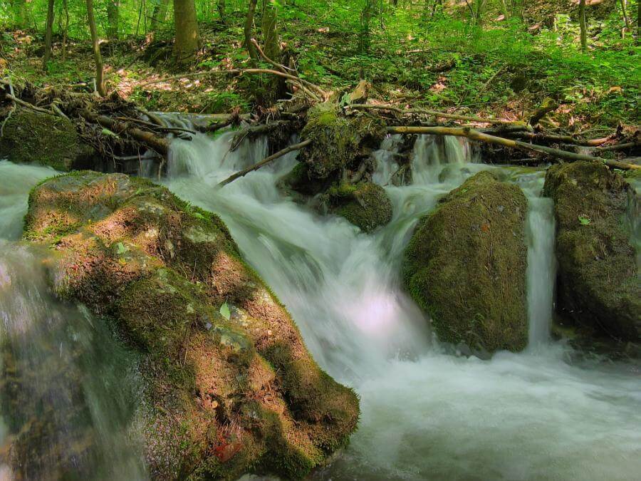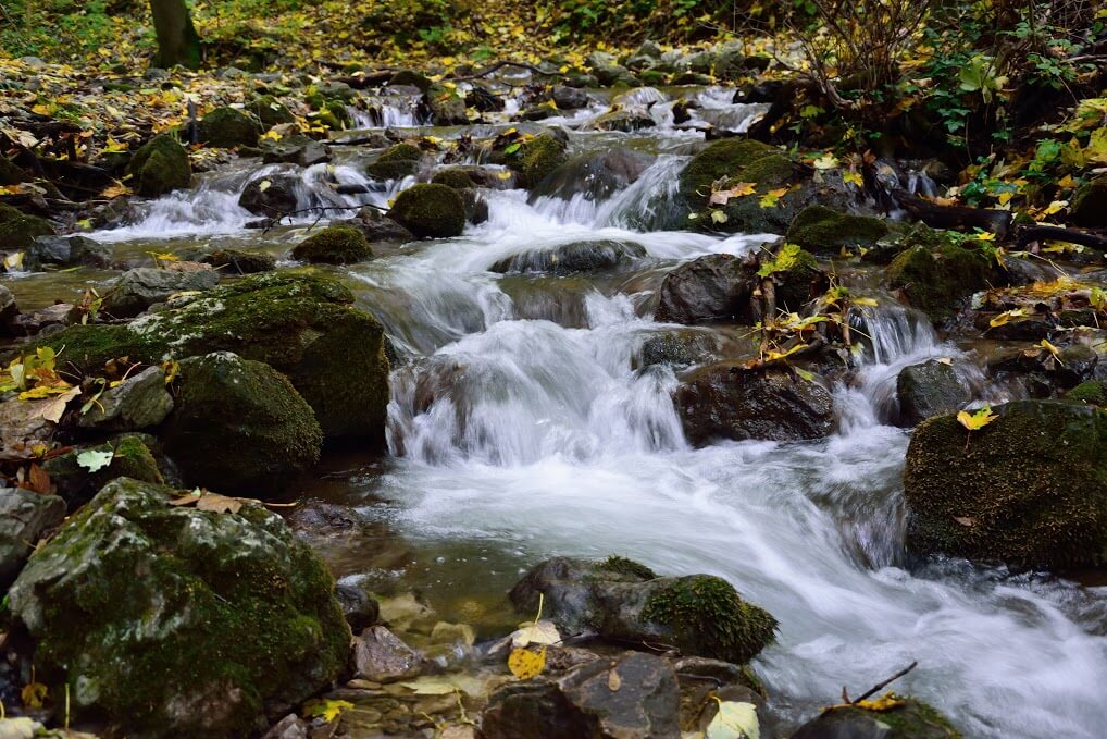 Túránk első szakaszában a turistaút halkan csörgedező patak mellett vezet el, a környező függőleges sziklafalak csodás látványa gyorsan elfelejteti velünk a városi, dolgos hétköznapjainkat.